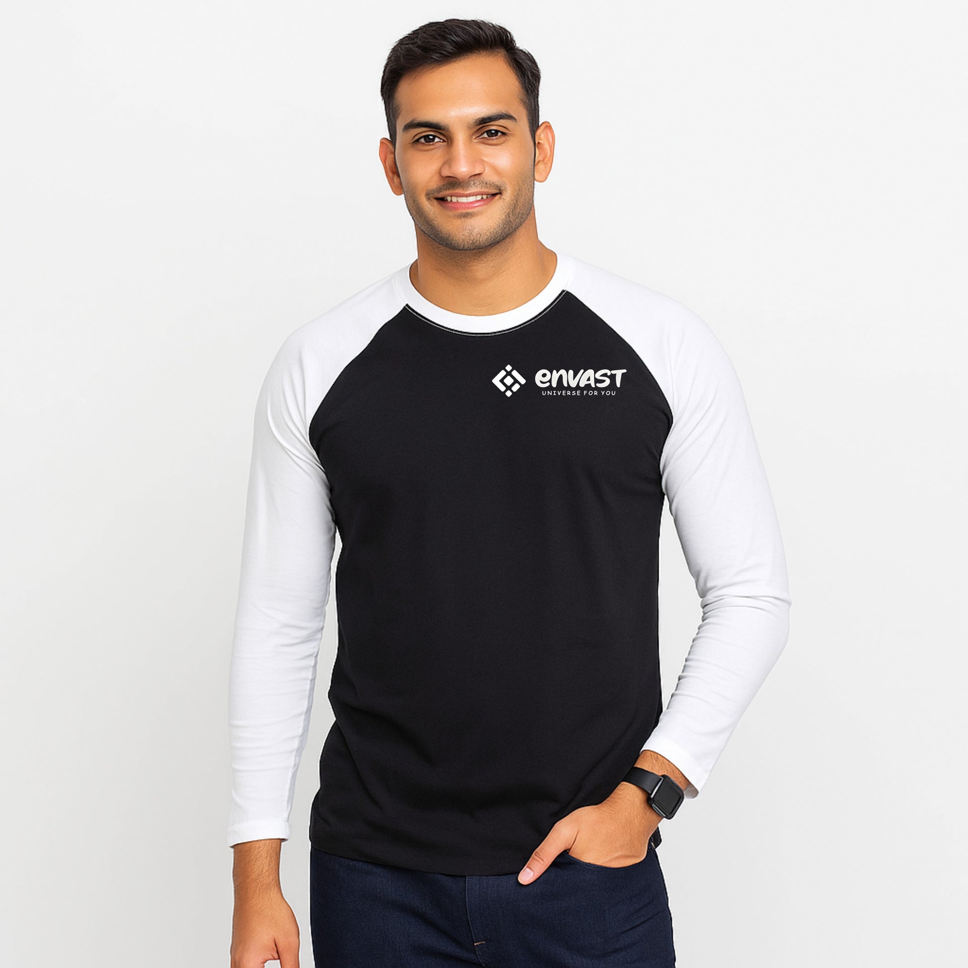 Envast Black & White Raglan Full Sleeve 100% Cotton T-Shirt